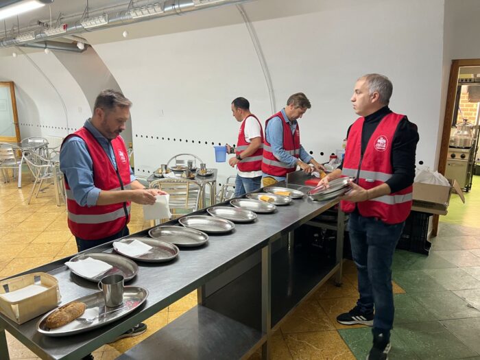 Posteriormente, los trabajadores de Coca-Cola han desarrollado su voluntariado colaborando en diversas tareas de las que se realizan en el centro. Así, han participado en las tareas de cocina, han aportado su ayuda en la organización del servicio de almuerzo y en tareas logísticas de abastecimiento y almacenado. De igual modo, han podido conversar con personas voluntarias del centro, así como con participantes.