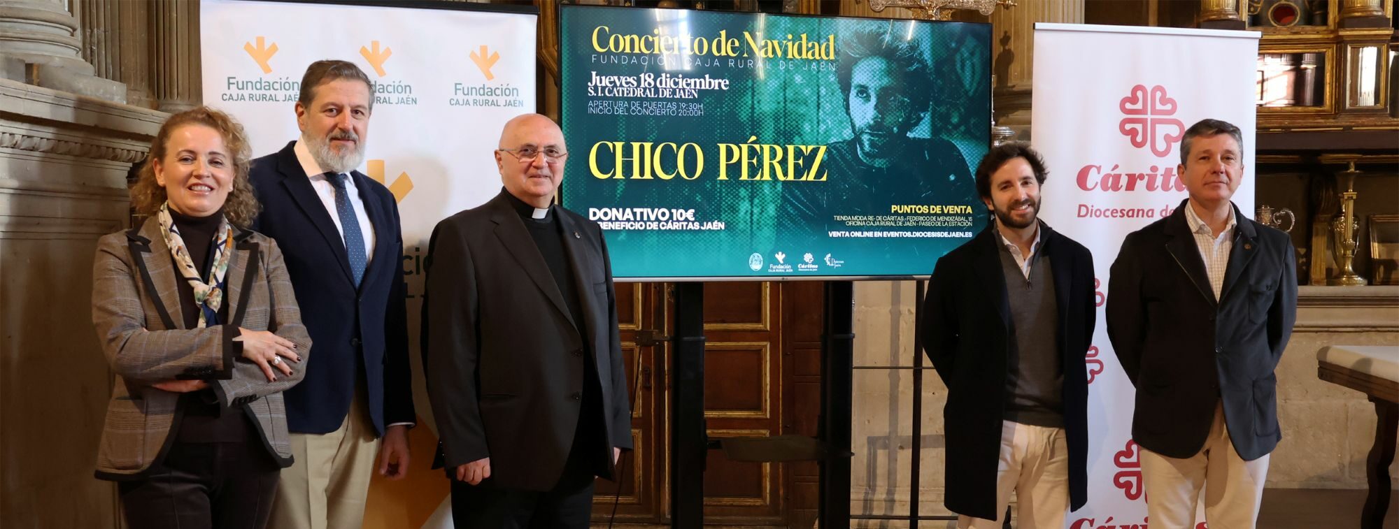 La Fundación Caja Rural de Jaén ha presentado una nueva edición de su Concierto de Navidad, que volverá a tener como escenario la Catedral de Jaén. Una actuación con tintes solidarios, cuya recaudación se destinará a Cáritas Diocesana de Jaén, en la que el jiennense Chico Pérez será el protagonista musical de una cita que se celebrará el próximo jueves 18 de diciembre, a partir de las 20:00 h.